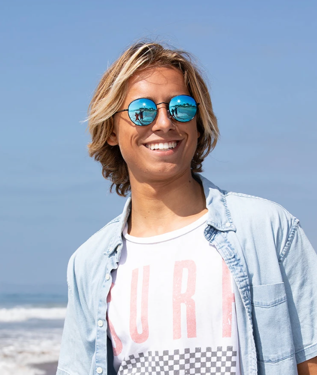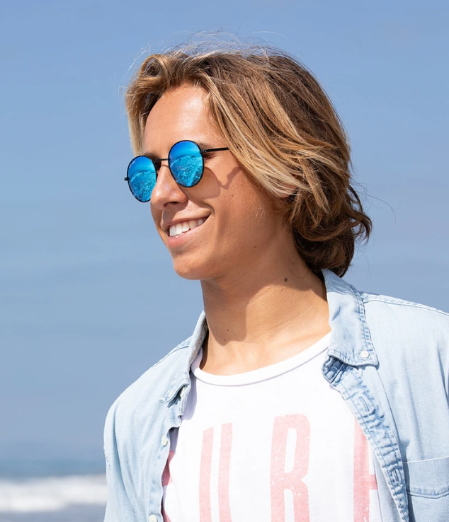 Ash, the perfect pair of eco-friendly sunglasses for the free-spirited festival-goer. These polarized sunglasses feature a retro round frame, reminiscent of the iconic "John Lennon" sunglasses, that will make you stand out in a crowd. The polarized lenses reduce glare for a clear vision, while the eco-friendly materials used in its construction make it a responsible choice for anyone looking to make a positive impact on the environment. Ash is the ultimate accessory for the stylish and environmentally conscious individual who wants to express their individuality and care for the planet at the same time. With Ash, you can dance the day and night away in style, knowing that you're making a positive impact on the planet.