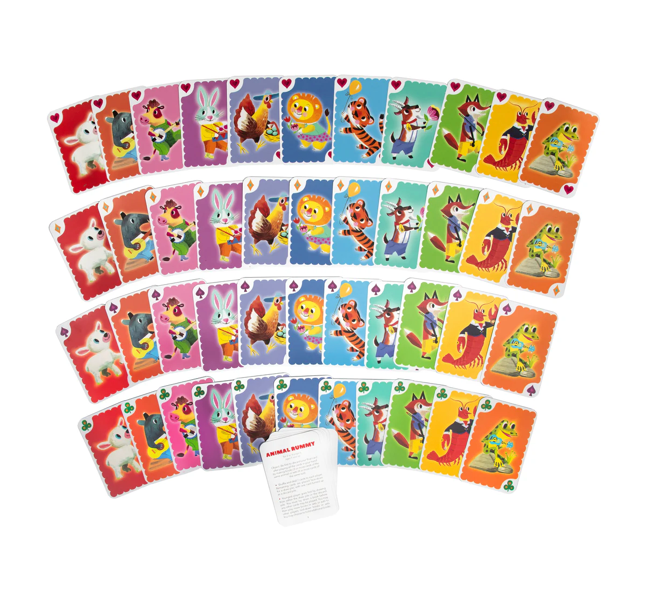 Animal Rummy deck of playing cards. Sweet and engaging animal illustrations and vintage design make this easy to play, classic children's card game very special.