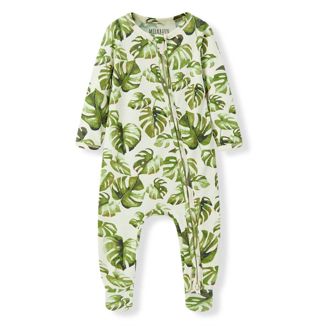 Cotton Stretch Baby Zipper Footed Romper - Island Leaf
