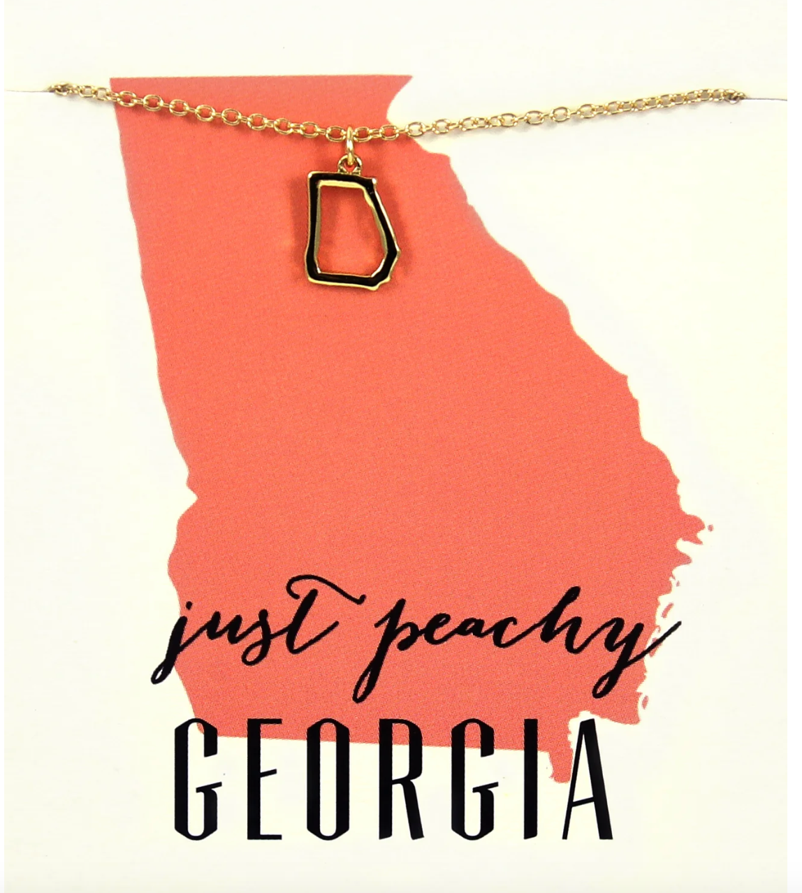 Just peachy, Georgia. Wear your pride with this gold Georgia state cut-out necklace. Easily adjustable from 16-18" in length and packaged on a stylish and colorful card with the state silhouette. Now you can enjoy the peaches in style!