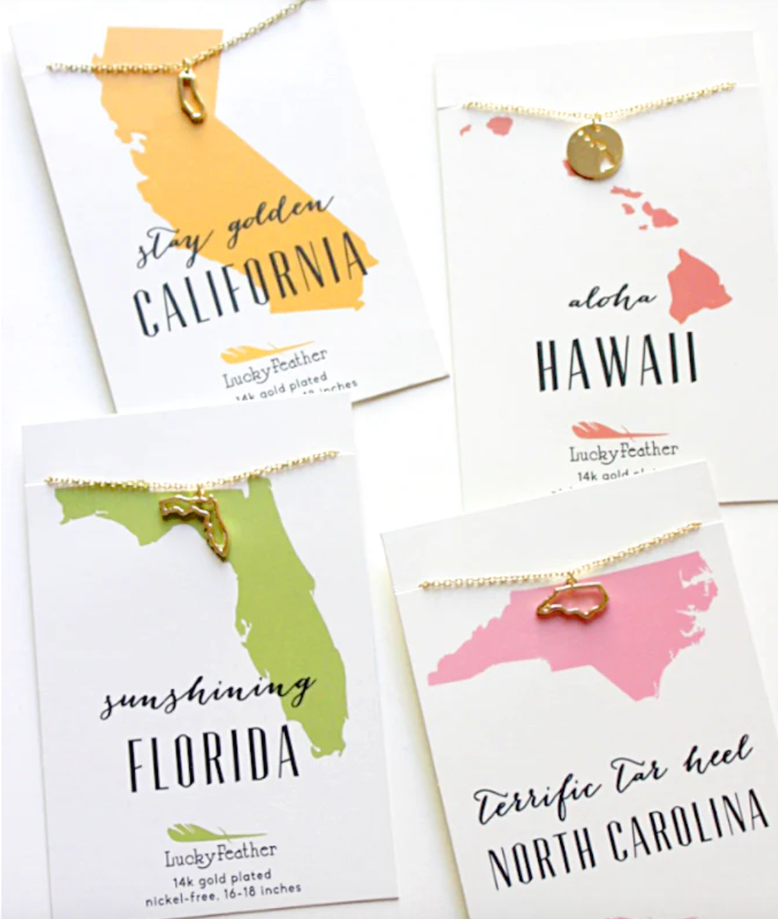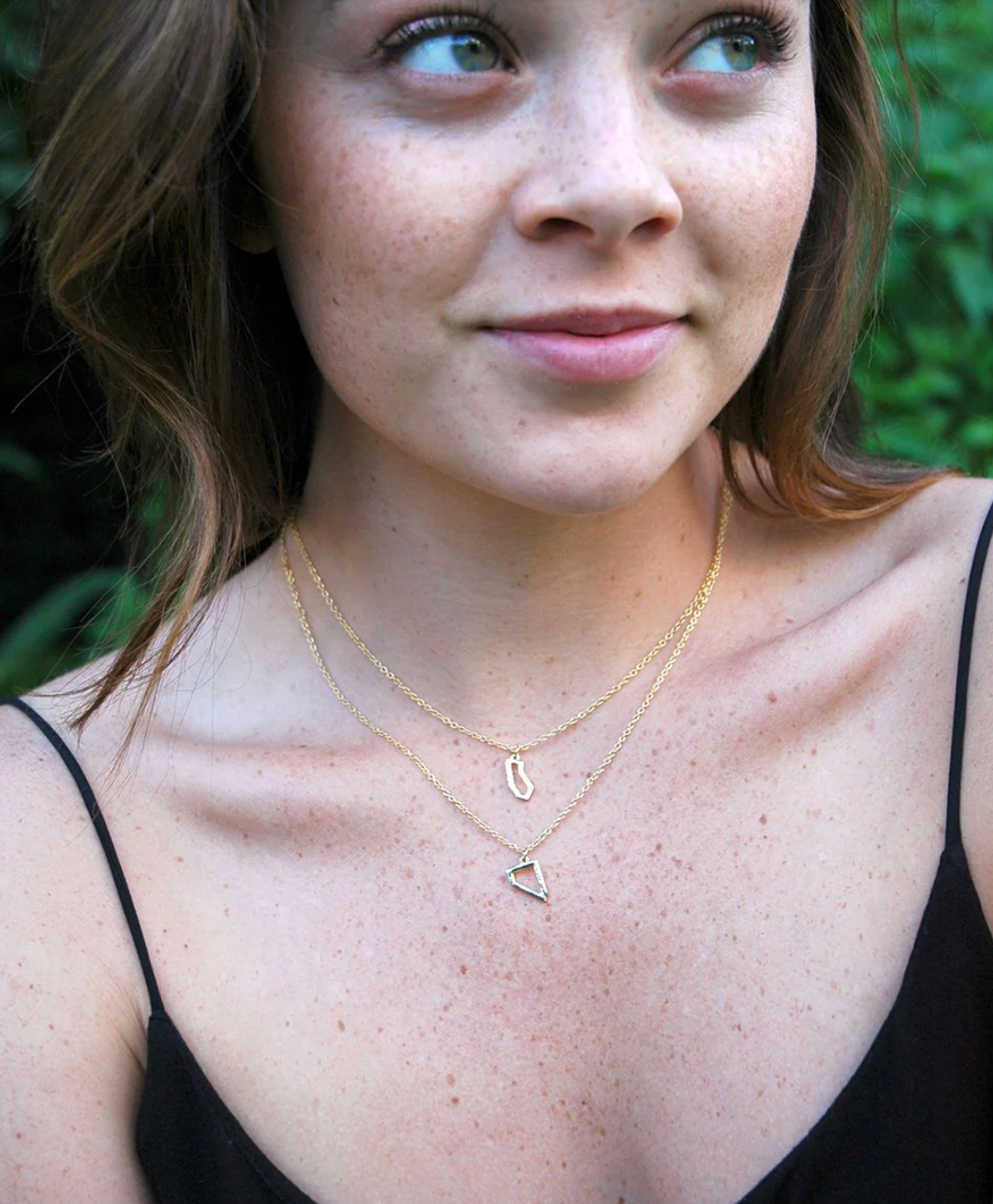 Home is where the heart is. Our outline state necklaces celebrate your home state, whether it's new to you or long-lived. Each necklace is delicately dipped in 14k gold for a shiny matte finish that looks amazing with every outfit, day or night.
