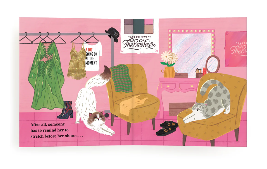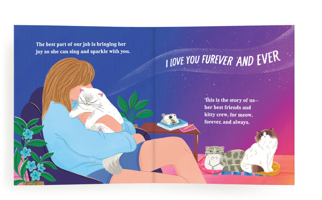 Welcome to the enchanted world of Taylor Swift’s beloved feline companions. Karma Is Three Cats is a charming picture book invites readers to follow the daily lives of Taylor’s kitty entourage: Meredith Grey, Olivia Benson, and Benjamin Button. Perfect for young readers and cat lovers alike, this delicate story brings to life the playful and heartwarming antics of these famous felines.