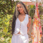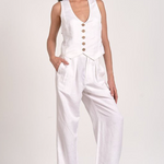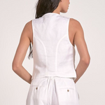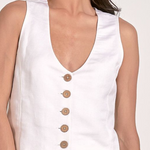 Linen Halter Vest Button Front Tank by Elan - White