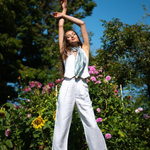 Day or night, keep cool with this linen halter vest.