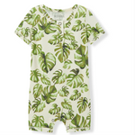 A fresh and modern interpretation on a classic silhouette, our soft Cotton Stretch Shortall in the Island Leaf print envelops your baby in fabulous comfort. The short sleeves, cropped legs, and ring-snap openings enable freedom of movement and ease of dressing. The contrasting edging highlights the structure and fabric design.