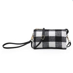 Riley Convertible Cross Body Purse, Wristlet or Clutch - Black White Plaid