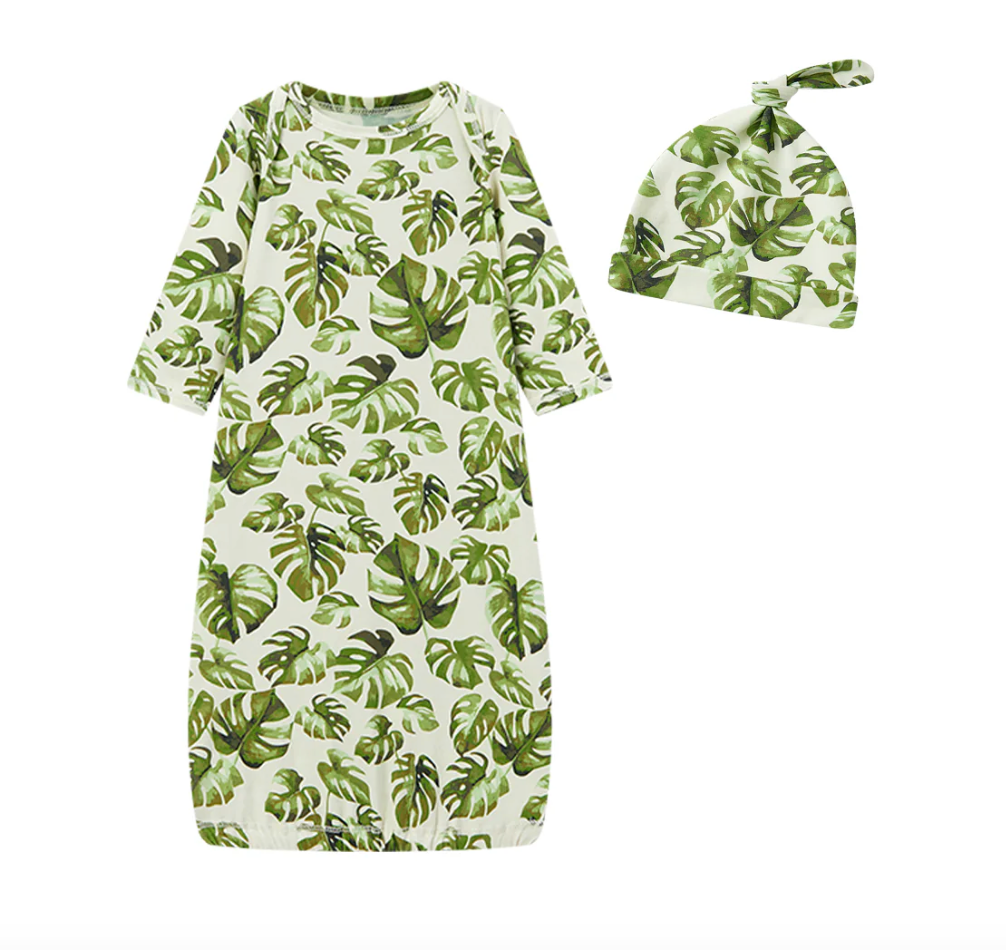 Slub Cotton Newborn Hat And Gown Set by Milkbarn- Island Leaf – Miss Monroe Boutique
