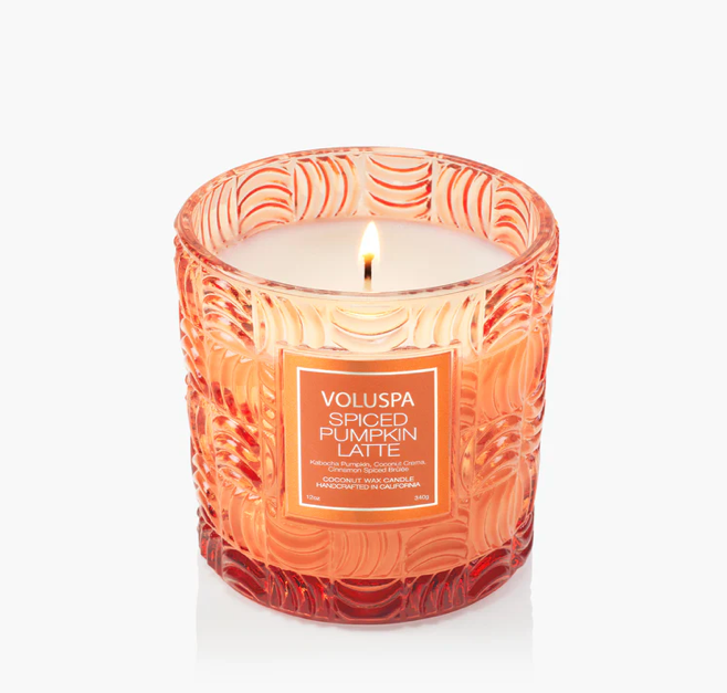 Voluspa's unique coconut wax blend is housed in a 12 oz. embossed ribbed pumpkin pattern glass jar with decorative gift box. The single wick allows you to enjoy fragrance throw for 60 hours. Our candles are handcrafted in the United States and feature our proprietary, clean-burning coconut wax blend and natural wicks. Our products are free of phthalates, parabens and sulfates and are never tested on animals. Up-cycle this best seller into a keepsake after the last burn.