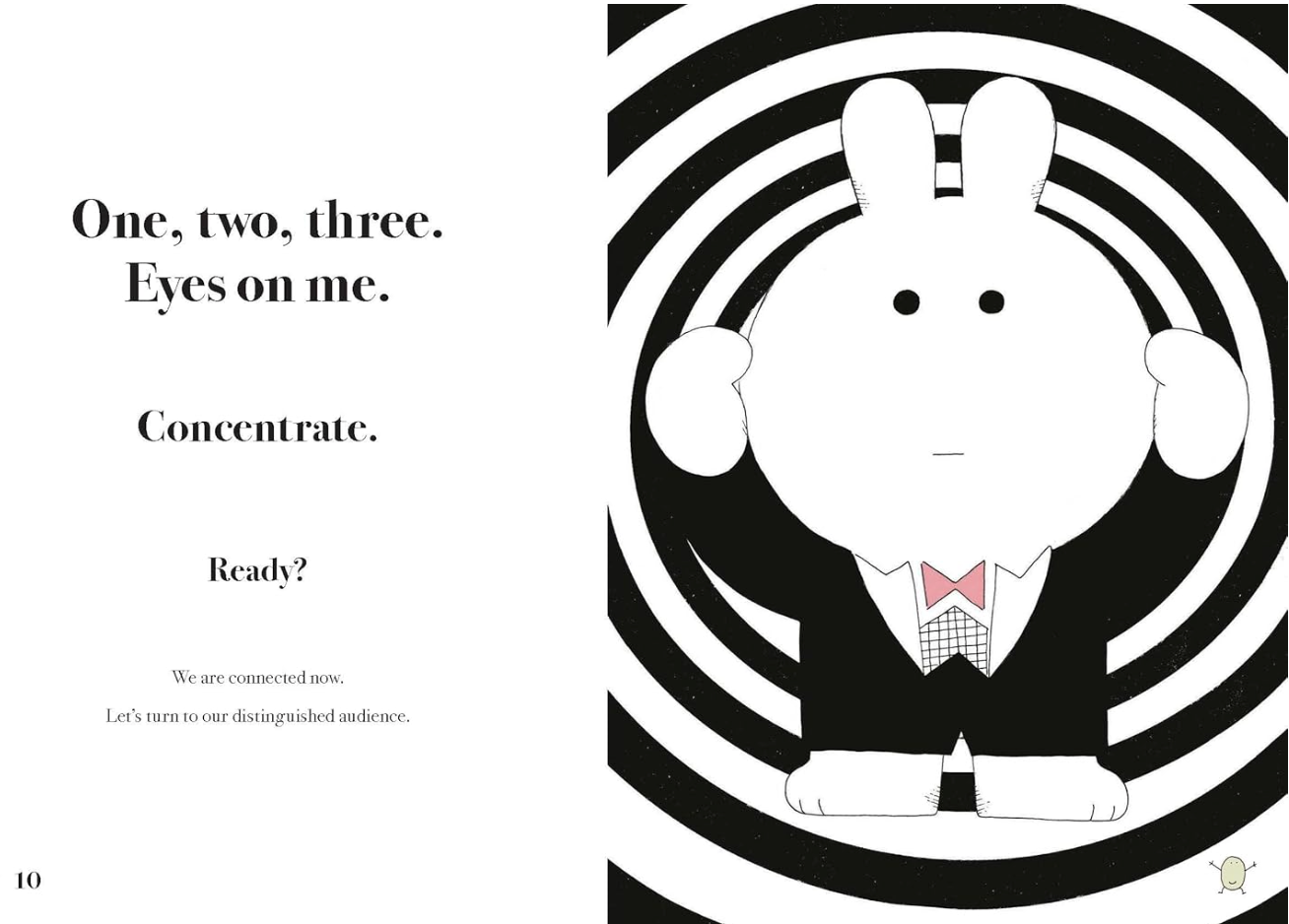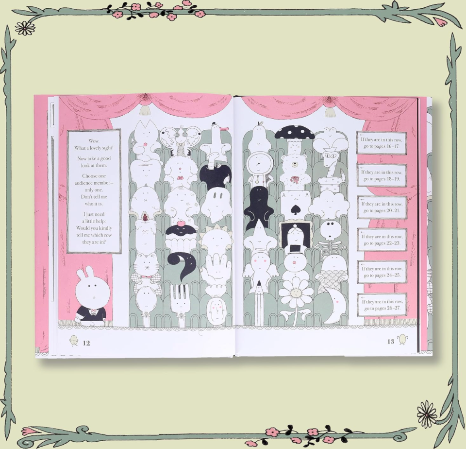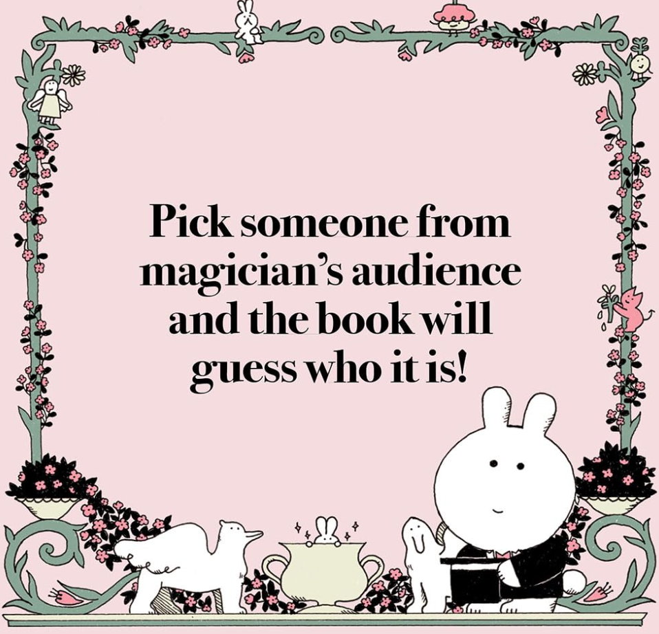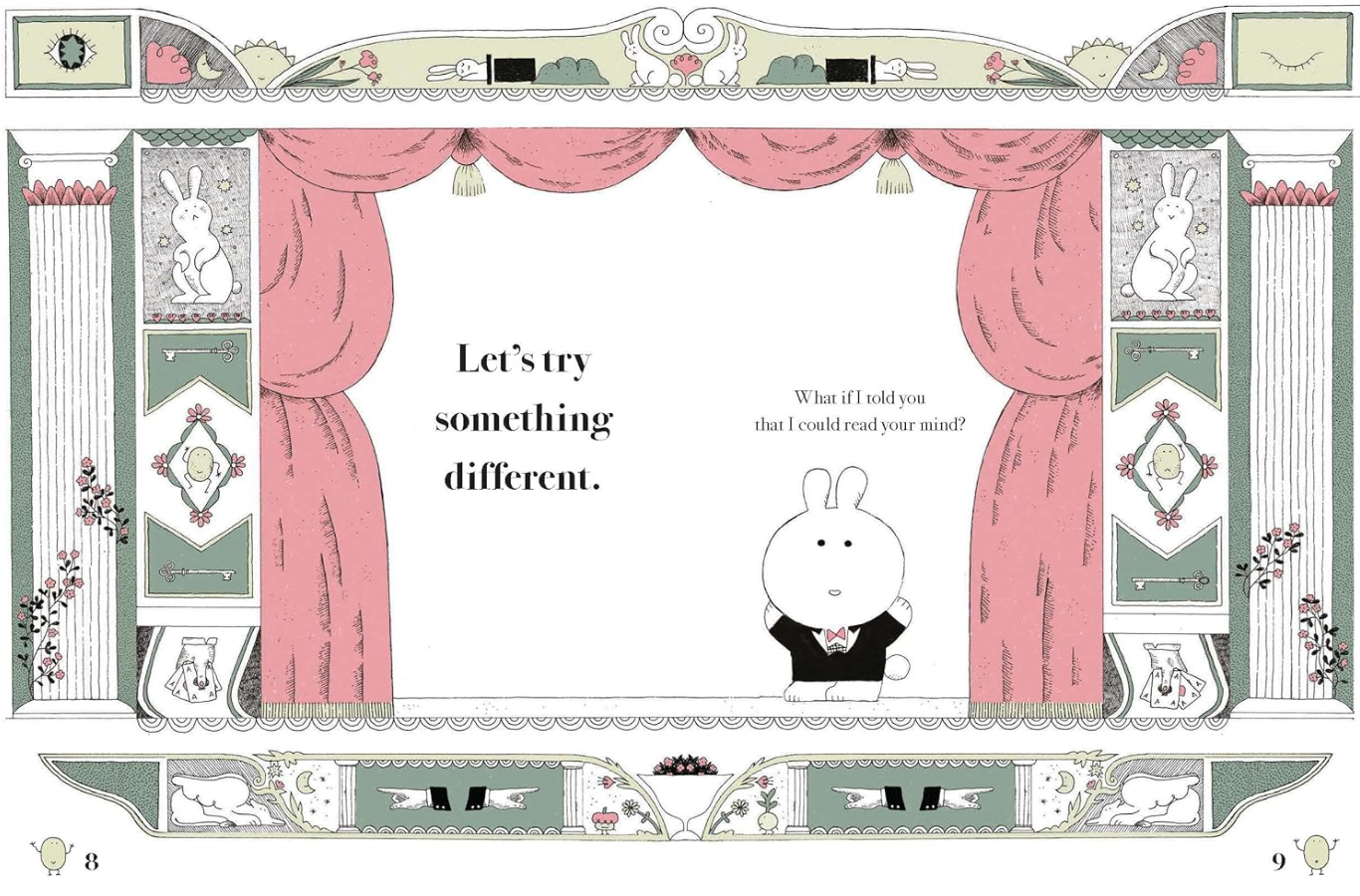 This is not an ordinary book—it’s a magical one! Lady Rabbit goes beyond pulling a rabbit out of a hat or making herself disappear. For her next act, she will READ YOUR MIND! That's right: You pick a member from the magician's adorable audience—don’t tell which one you’ve chosen—and this book will guess who it is!