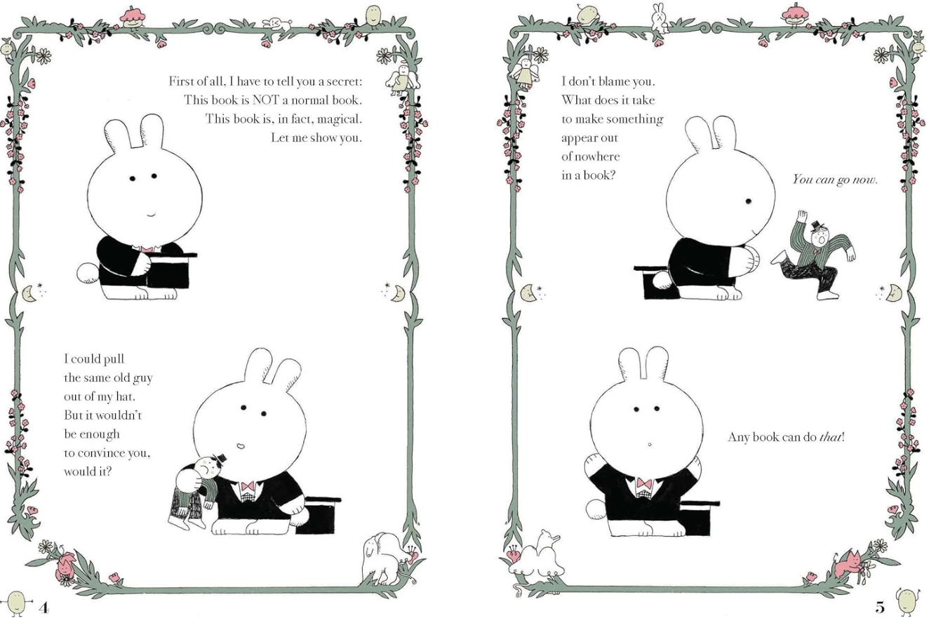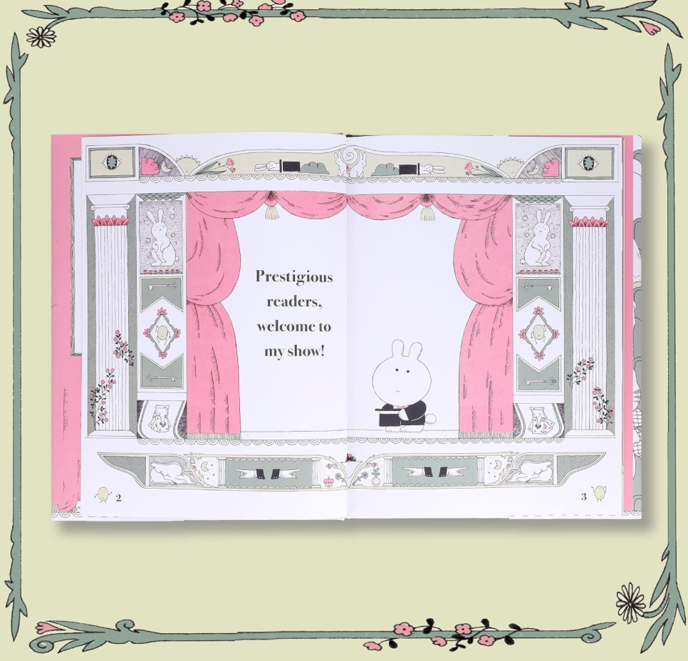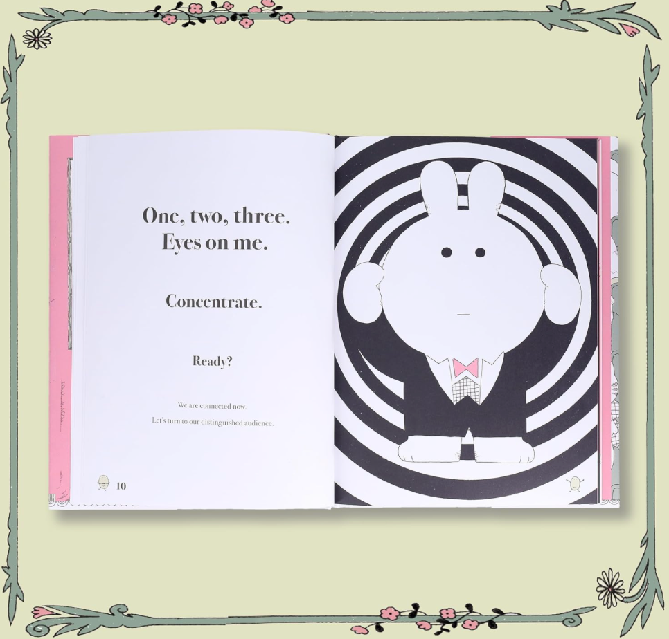 This is not an ordinary book—it’s a magical one! Lady Rabbit goes beyond pulling a rabbit out of a hat or making herself disappear. For her next act, she will READ YOUR MIND! That's right: You pick a member from the magician's adorable audience—don’t tell which one you’ve chosen—and this book will guess who it is!