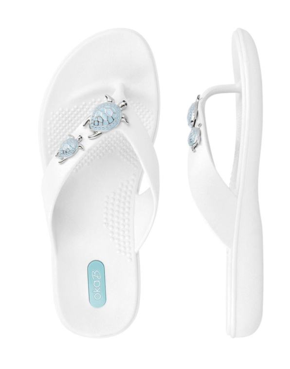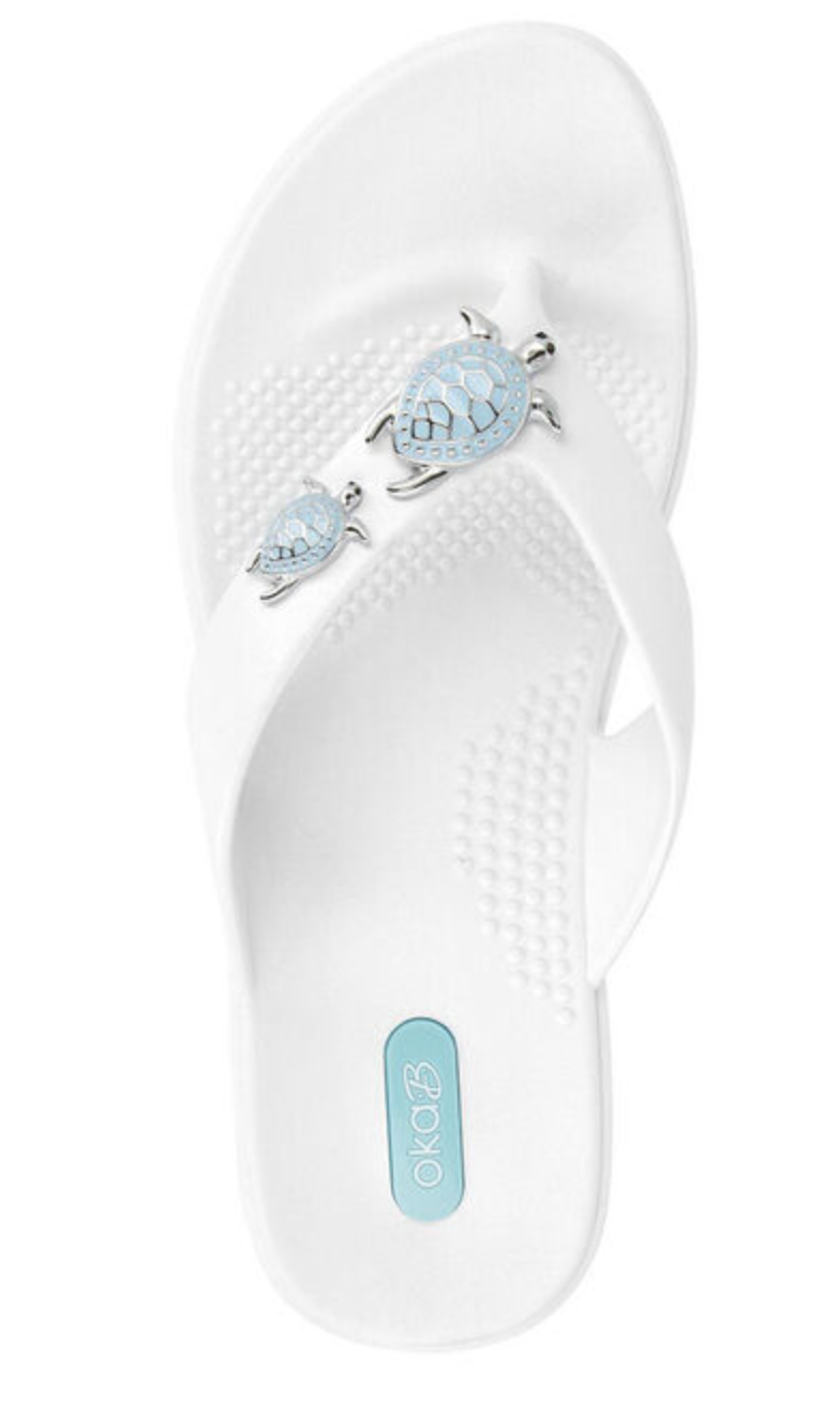 Add some turtle love to your toes with Theresa's beautiful sea turtle charms. Easy to clean and comfortable, this flip flop will bring a little vacation to your feet.