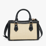 The Harmony Straw Crossbody pairs timeless texture with polished details. Crafted with woven straw and smooth vegan leather trim, it features a secure top zip closure, dual handles, and a removable crossbody strap for versatile wear.