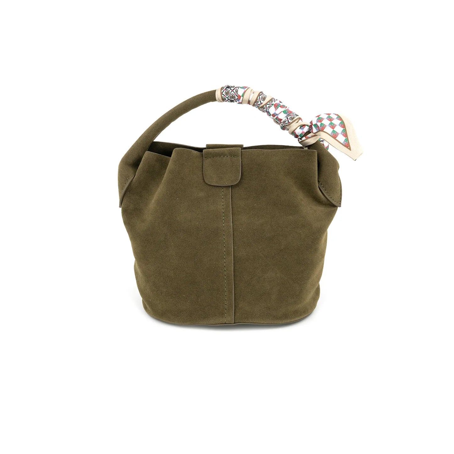 Suede Mini Tote w/ Scarf Wrapped Handle - Olive Green