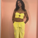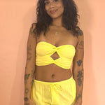 Our Double Twist Crop Top is a summer must have! It is made from a lightweight soft cotton fabric. It is a strapless bandeau style featuring a double twist front detail and a fully elastic back to shape to your body. Complete the look with any of our bottoms for a flirty chic vibe.