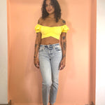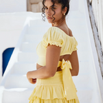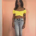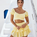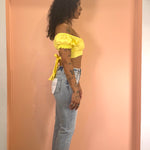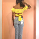 Wear it as a set or style it your own way! This super cute top is made from a high quality natural fabric. This cropped style features short puff sleeves and an adjustable tie back.
