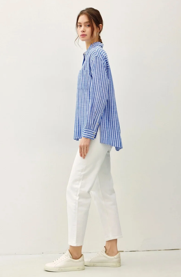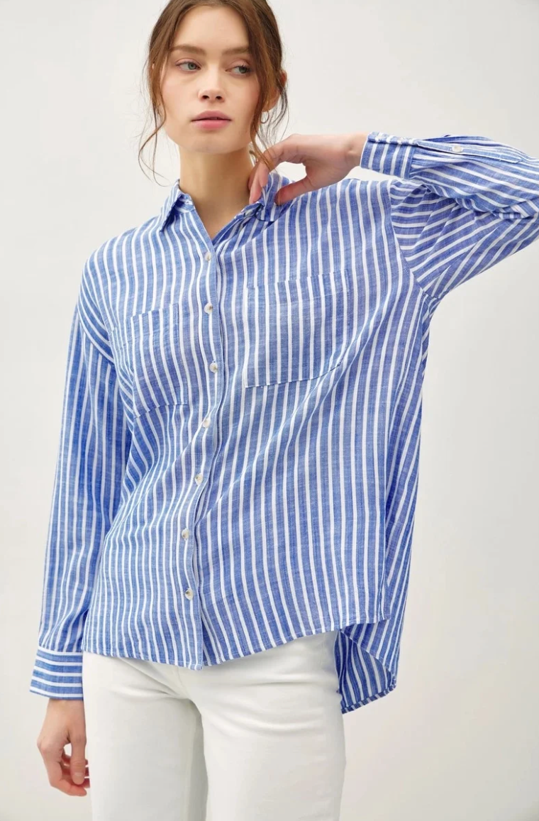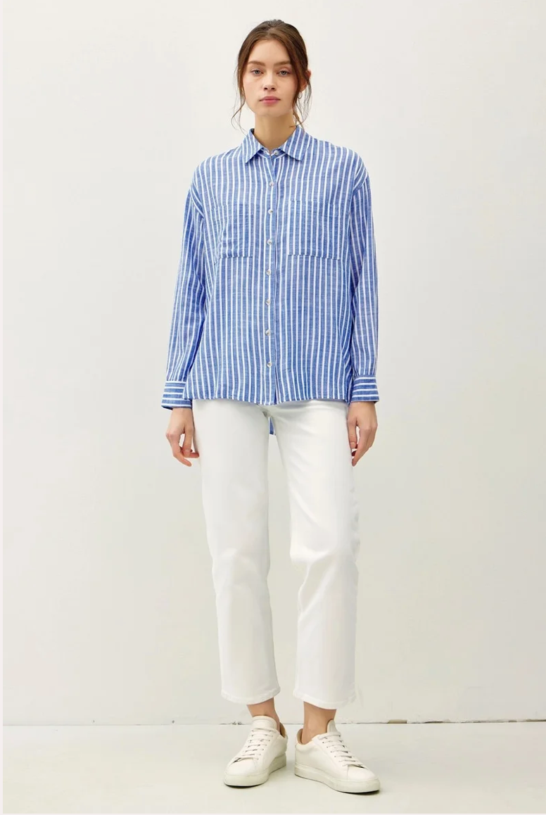 Striped Classic Button Up Shirt - Denim Blue & White Stripe