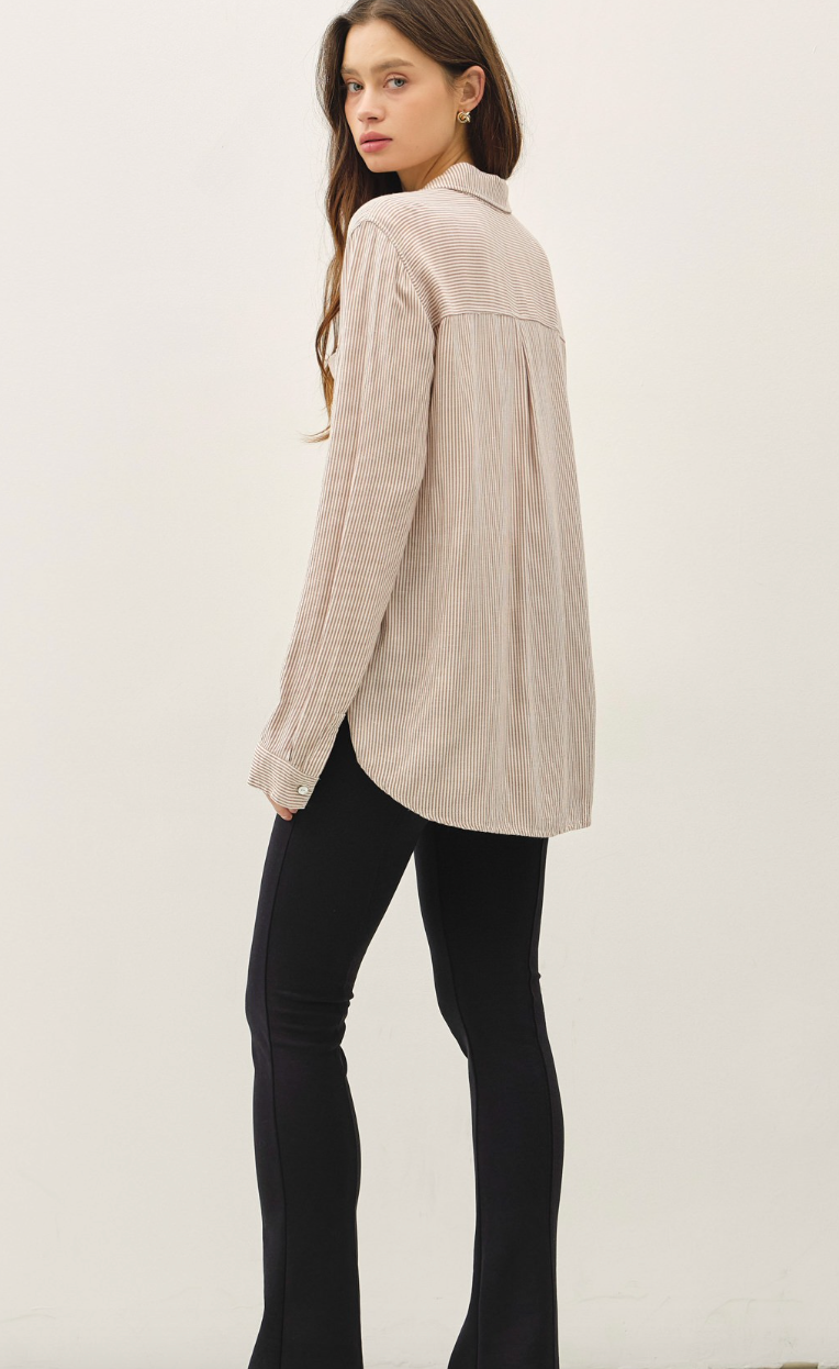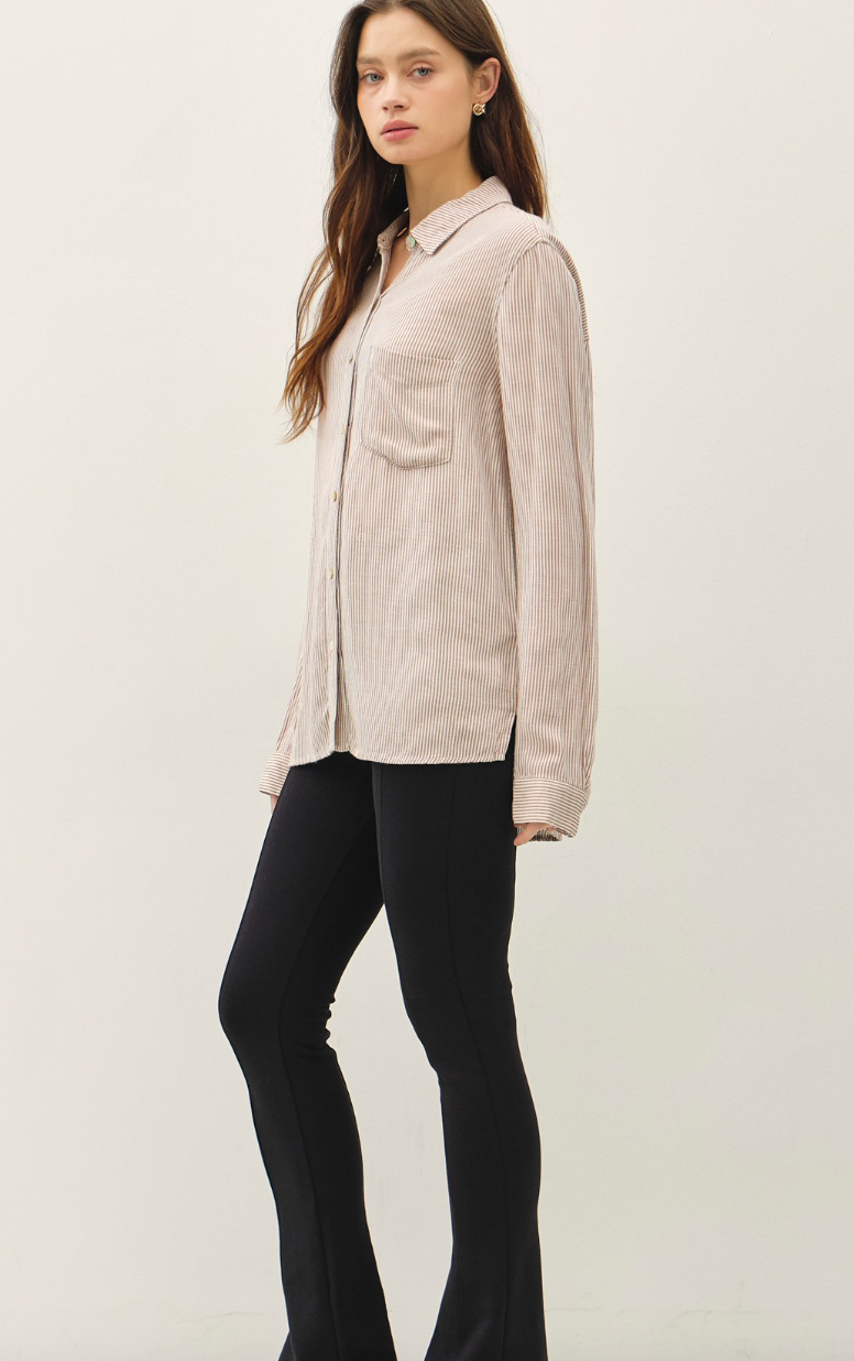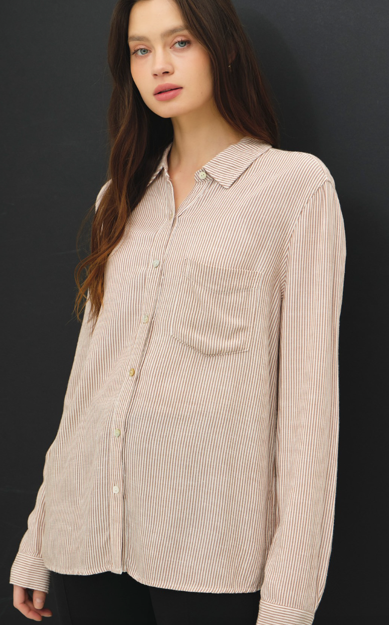 Striped Classic Button Up Shirt - Mocha & White Stripe – Miss Monroe Boutique