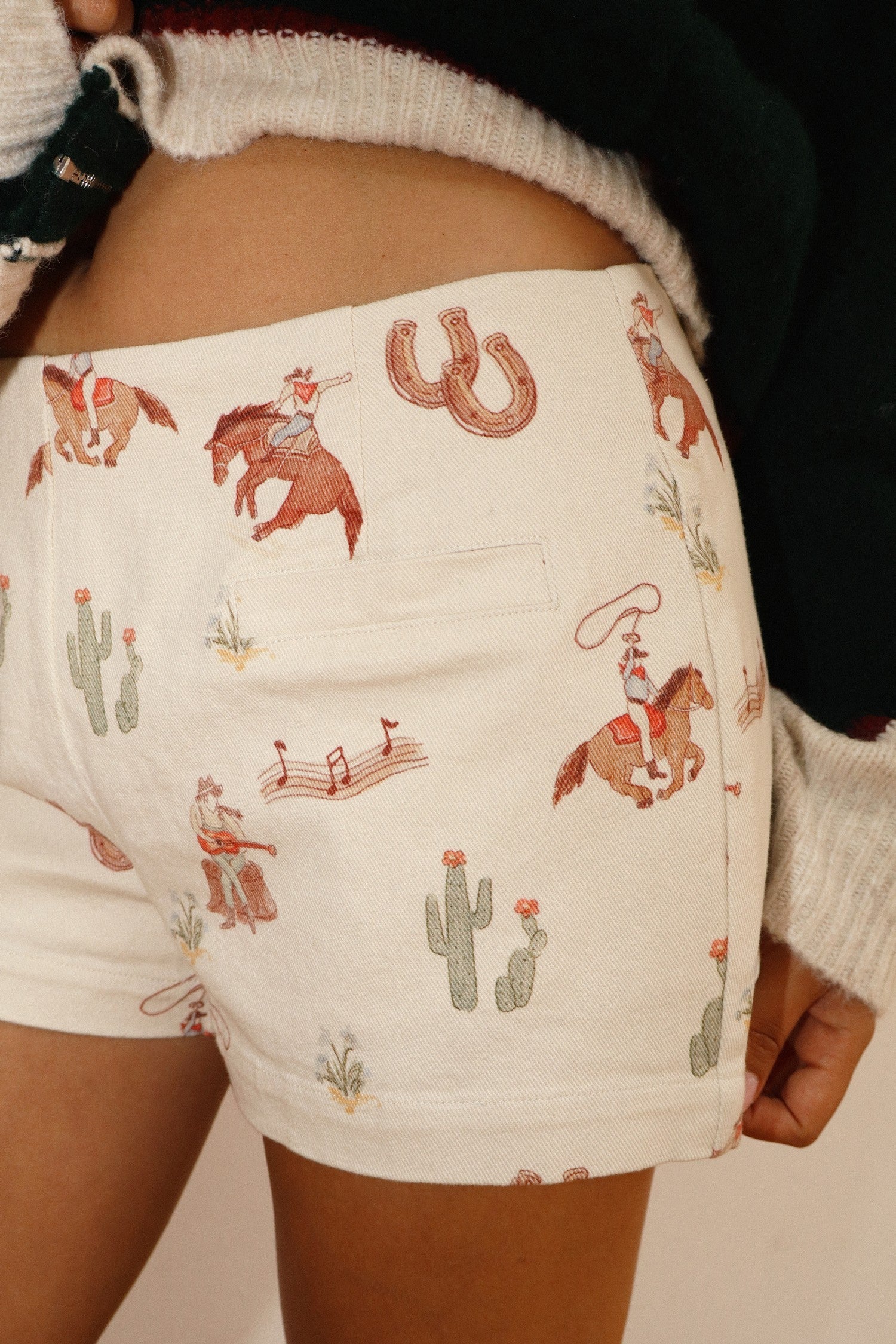 Cowgirl Print Mini Shorts - Off White