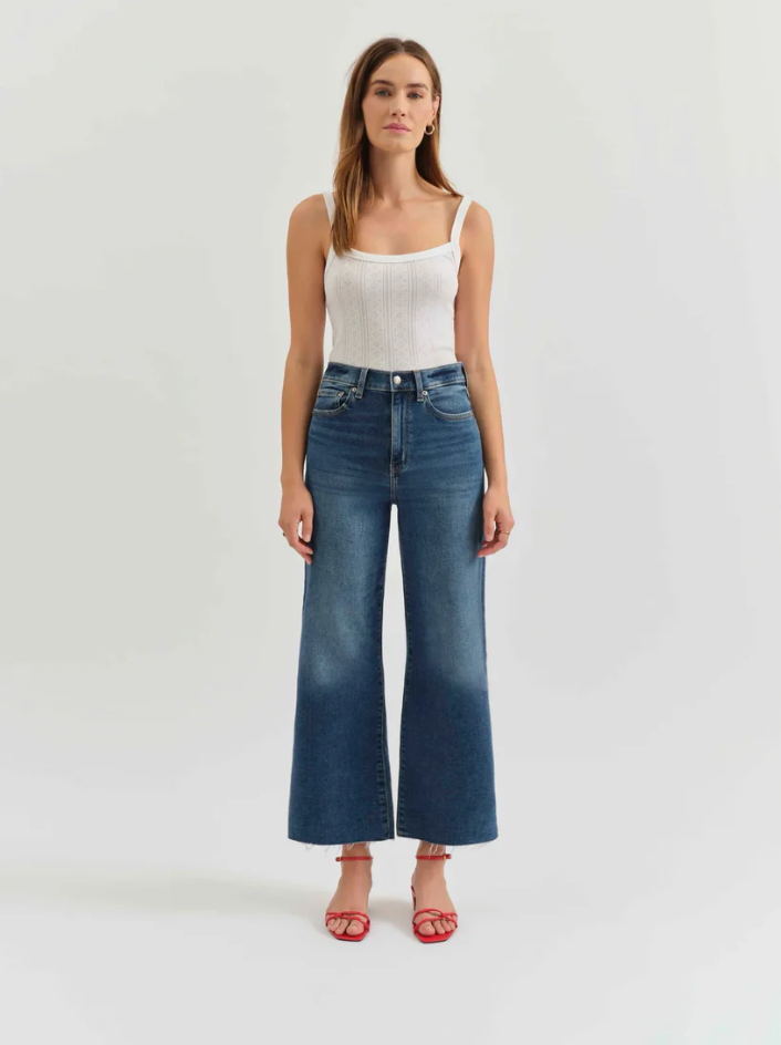 Pleaser High Rise Wide Ankle Jean by Daze - Uptown (Dark Blue)