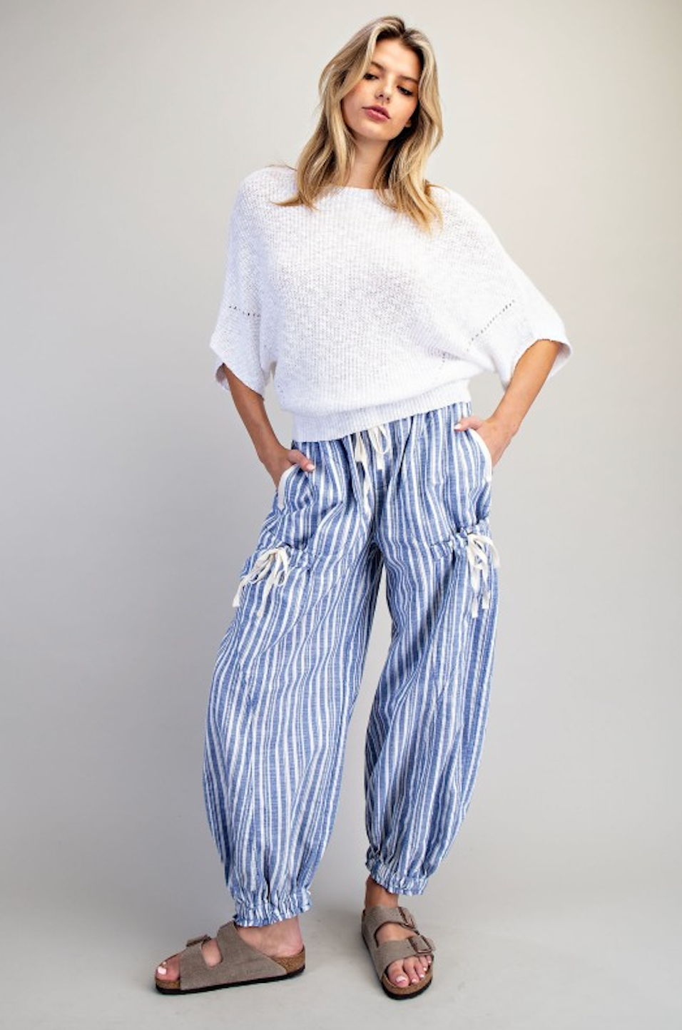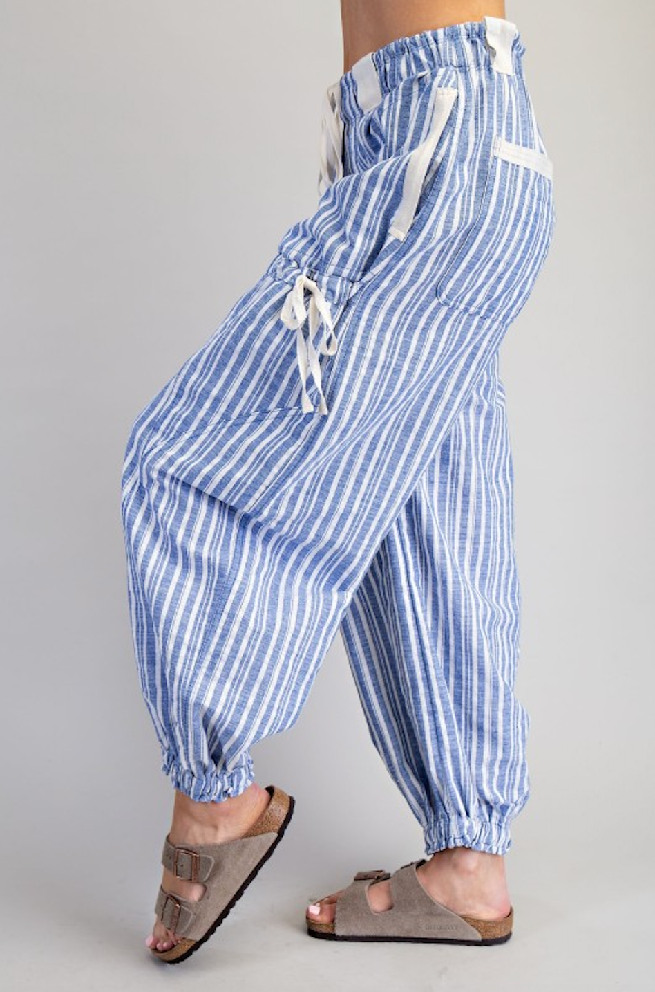 Soft Washed Striped Jogger Pants - Oatmeal