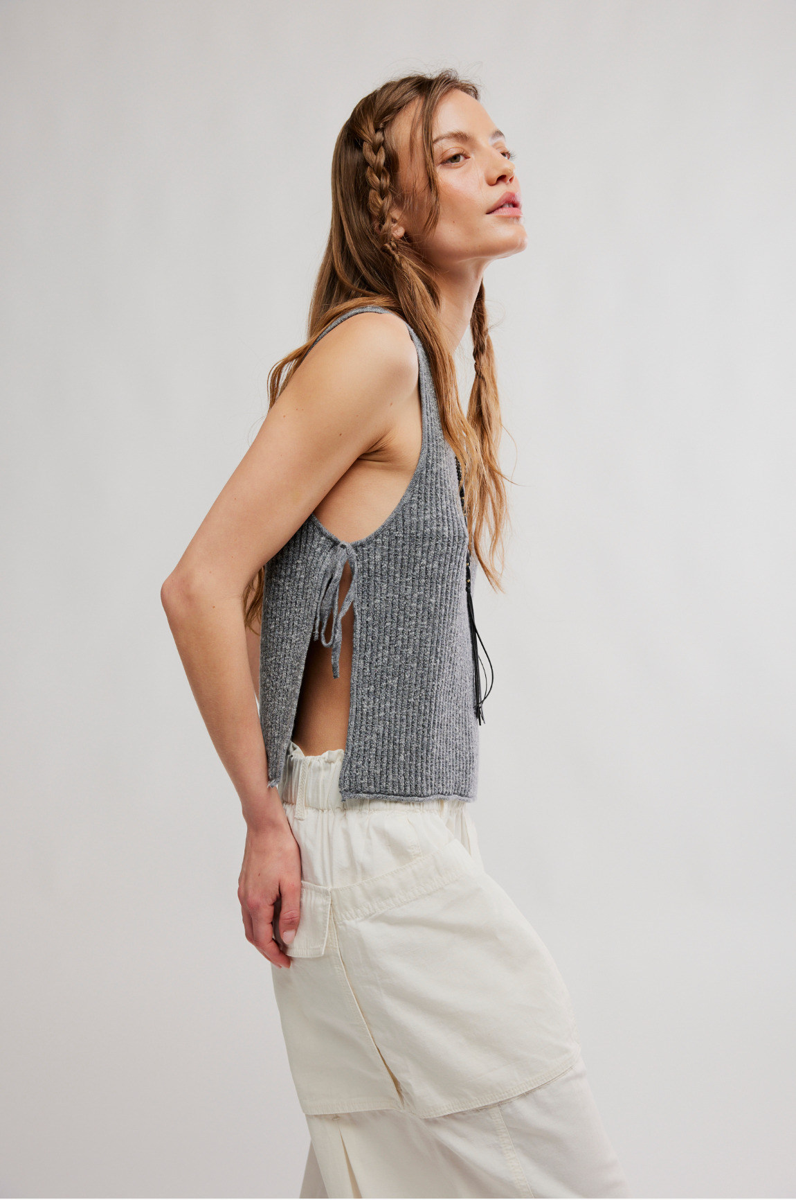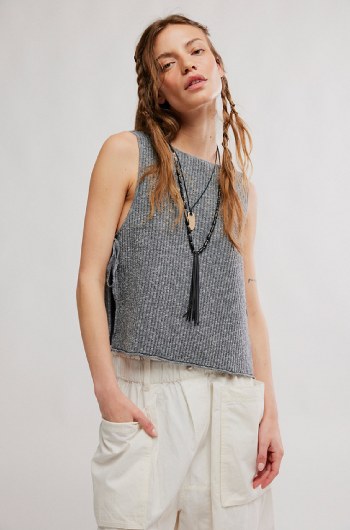 Lizzie Tie Side Sweater Tank - By Free People - Smoked Pearls Grey