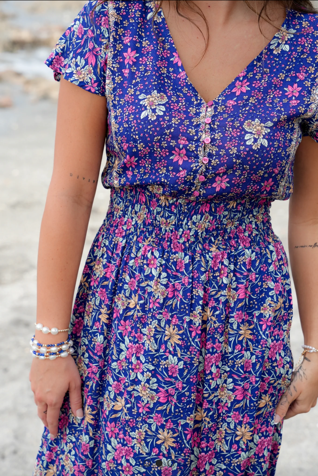 Strapless Floral Tiered Maxi Dress by Eesome - Blue Floral