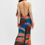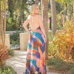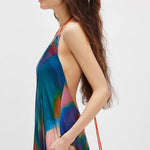 Take your casual dress collection up a notch with this forever classic style featured in a free and flowy silhouette with an adjustable, halter-style V-neckline, colorful printing throughout, and open-back detailing for a slightly sultry finish.