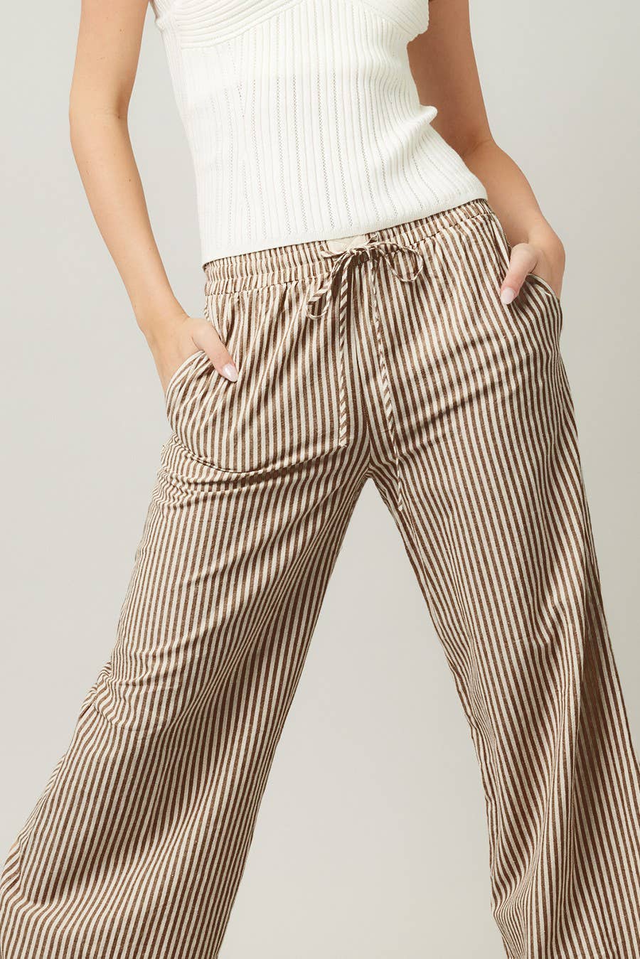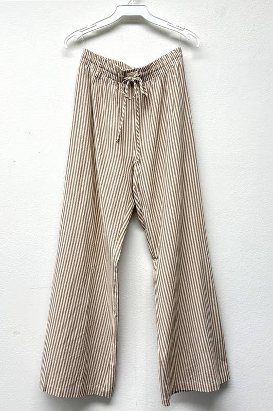 Striped Wide Leg Pants - Taupe and White