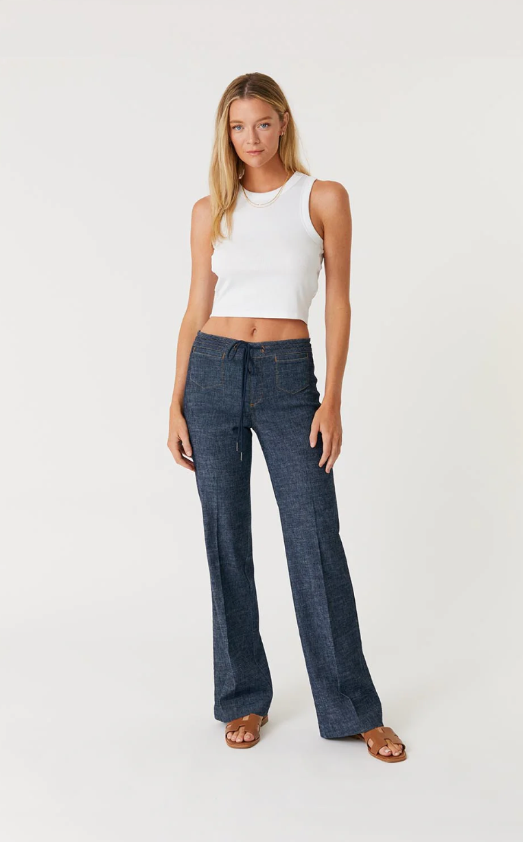 The perfect lounge pant in a comfort stretch denim to make you feel at ease. The fit is easy through hip and thigh. You will love this lounge pant because of how comfortable you feel in them and definitely how good you look in them. Elliott is drapery and soft but most of all comfortable. Fit is relaxed.