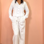 Our go-to vacation pant, we have this wide leg cotton gauze style with smocked details in regular rotation. Pair this ultra-wearable style with the coordinating top or style on its own.