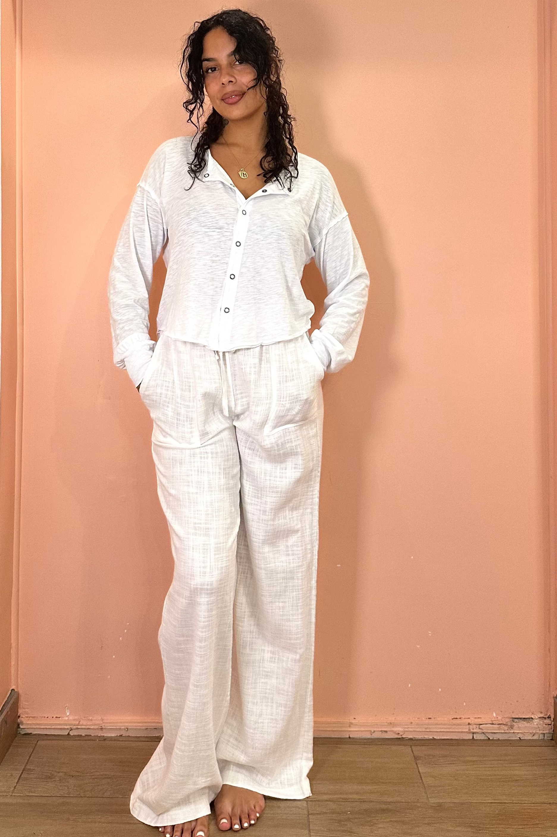 Wide Leg Tie Waist Pants by Bobi - Cream