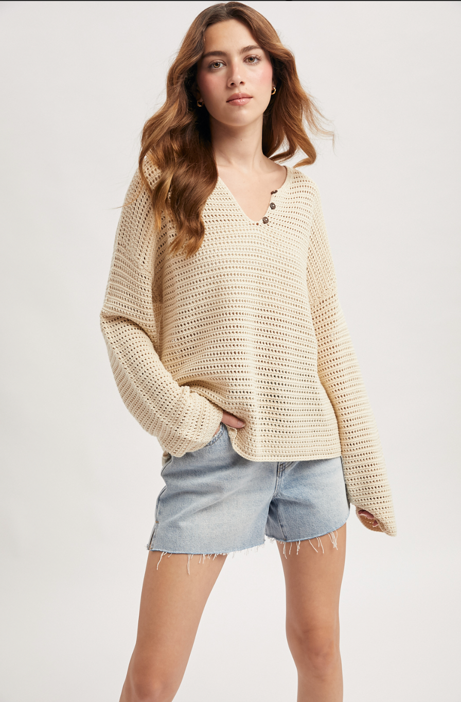 Crochet Open Knit Scallop Trim Sweater by Eesome - Off White