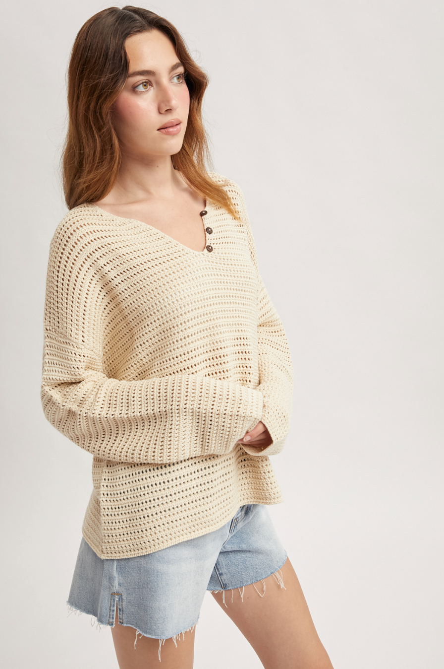 Crochet Open Knit Scallop Trim Sweater by Eesome - Butter Yellow