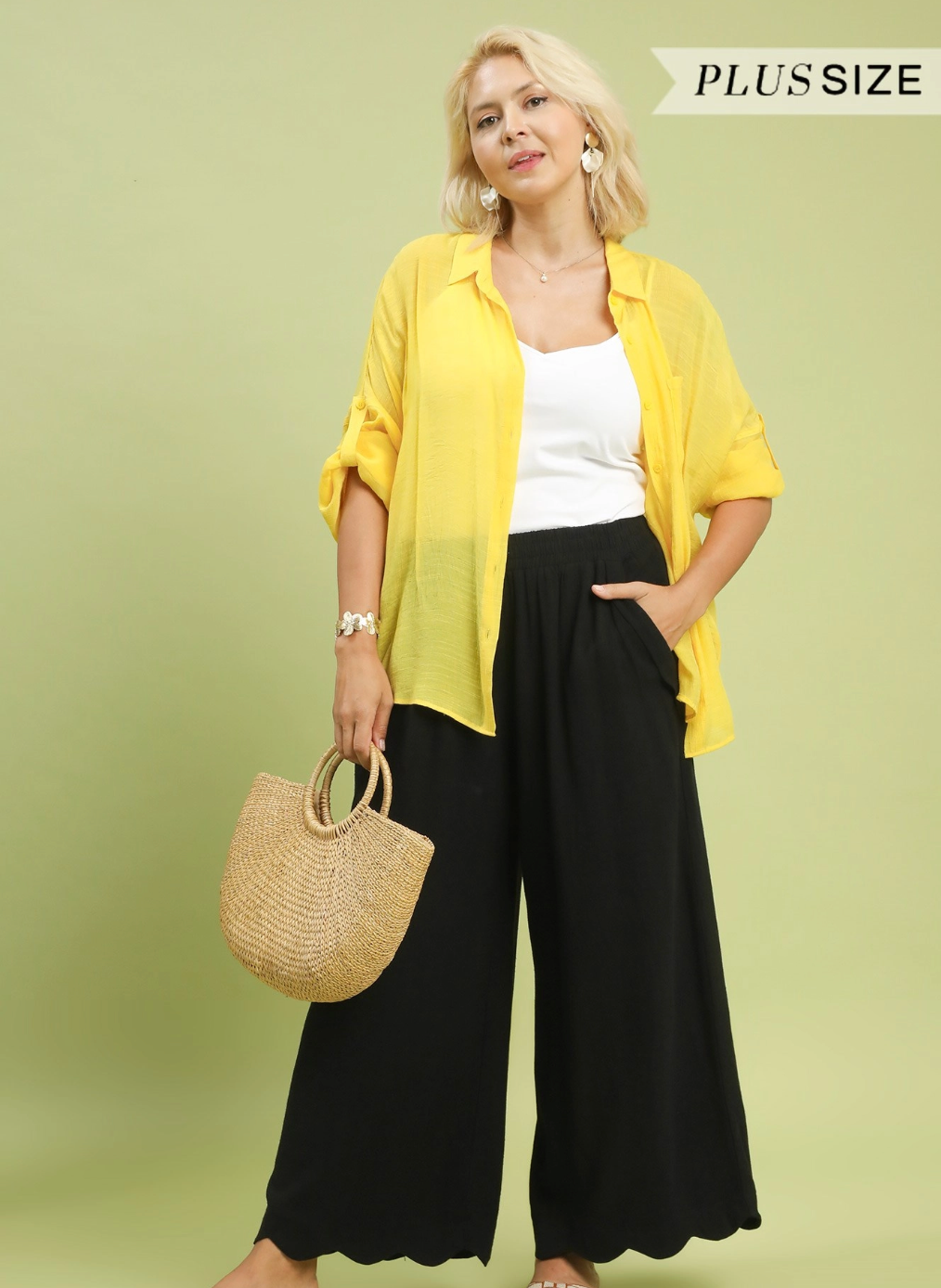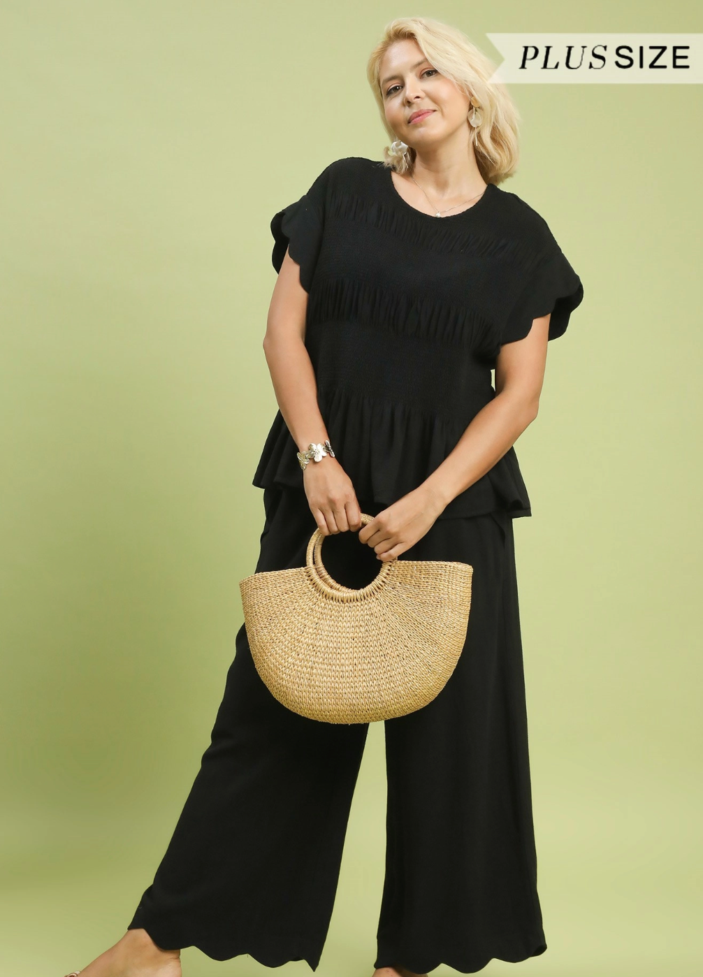 Linen Wide Leg Pants With Scalloped Hem - Black – Miss Monroe Boutique