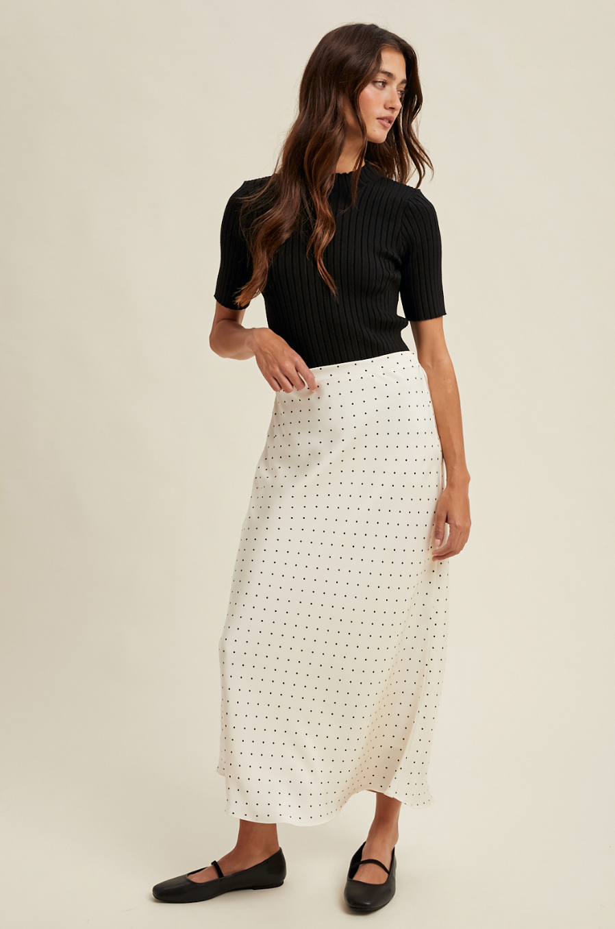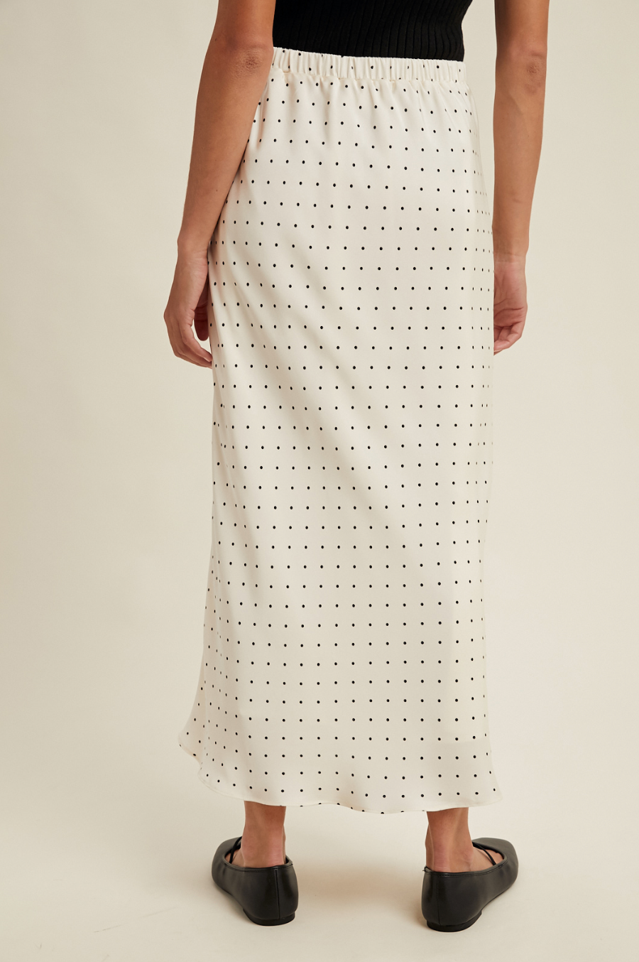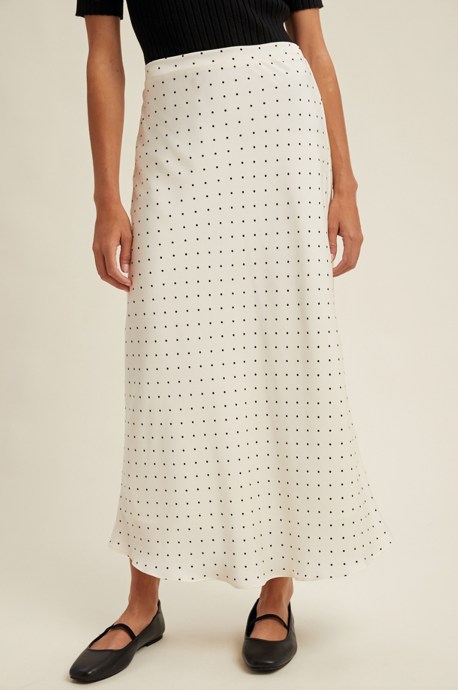 Polka Dot Satin Midi Skirt by Wishlist - Off White / Black – Miss Monroe Boutique