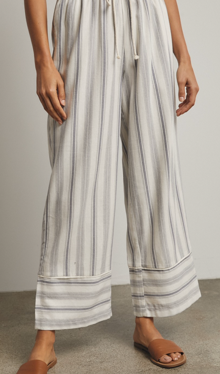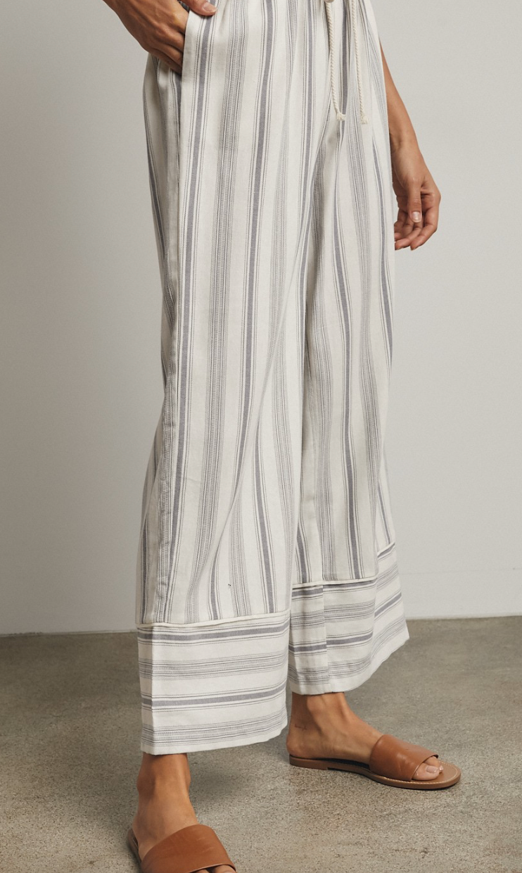 Striped Drawstring Wide Leg Pants WIth Hem Detail by Wishlist - Grey / Cream