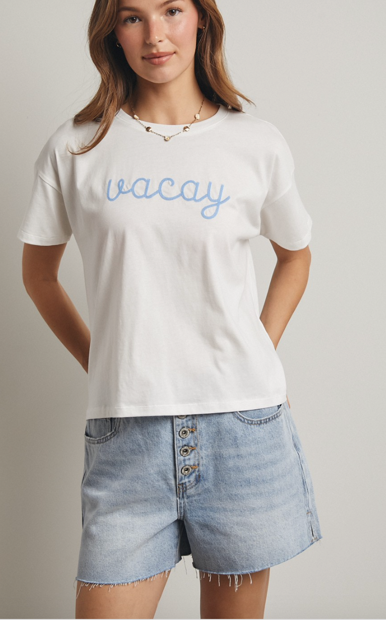 Vacay Embroidered Short Sleeve Tee - White / Surf Blue
