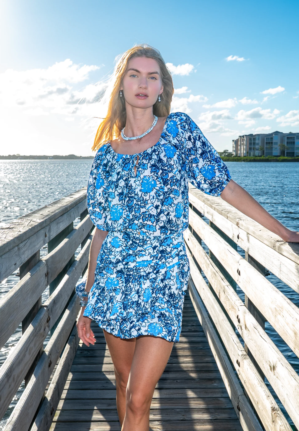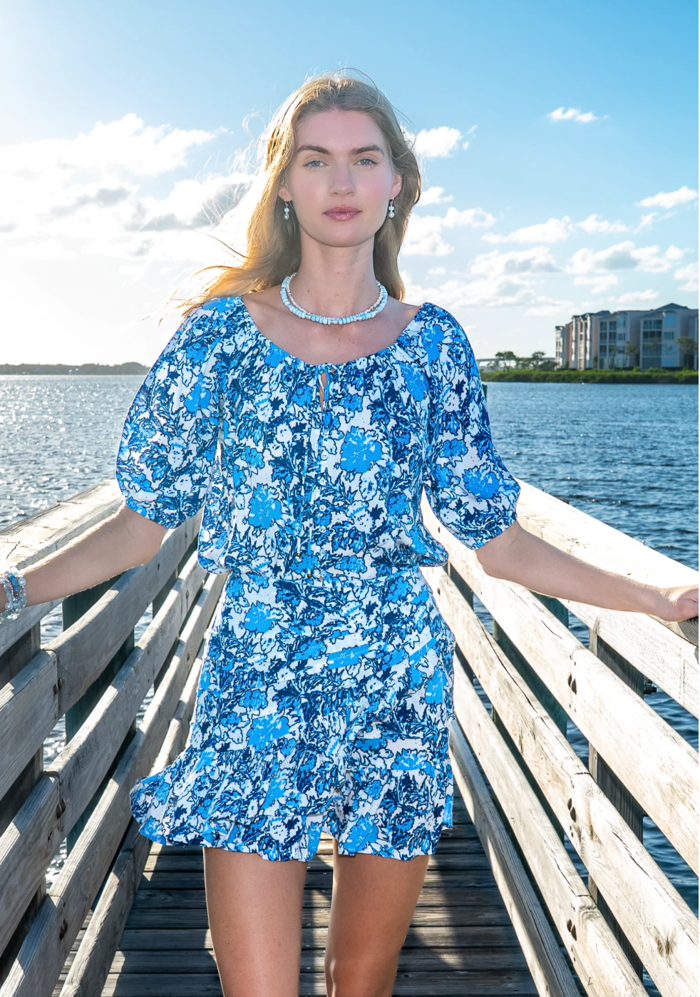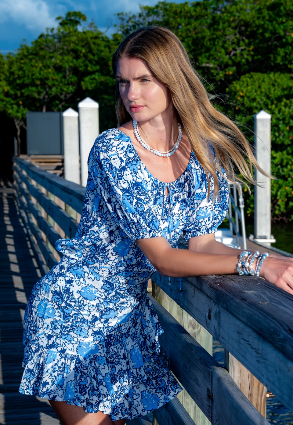 Annie Mini Skirt - Blue Coastal Floral Print – Miss Monroe Boutique