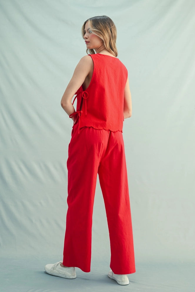 Cotton Tank Top with Side Ties by Wishlist - Cherry Red