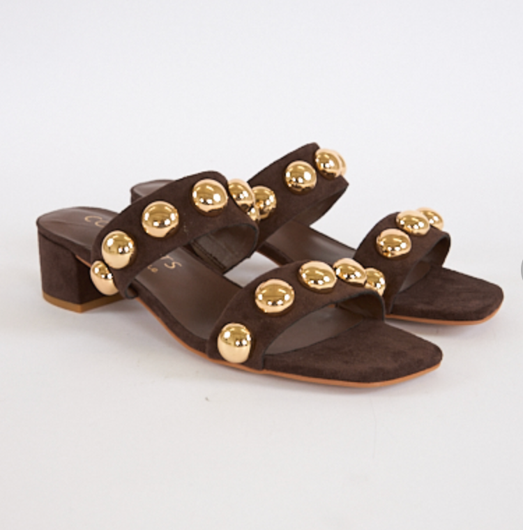 Venus Heeled Sandals With Studs - Coffee Brown / Gold