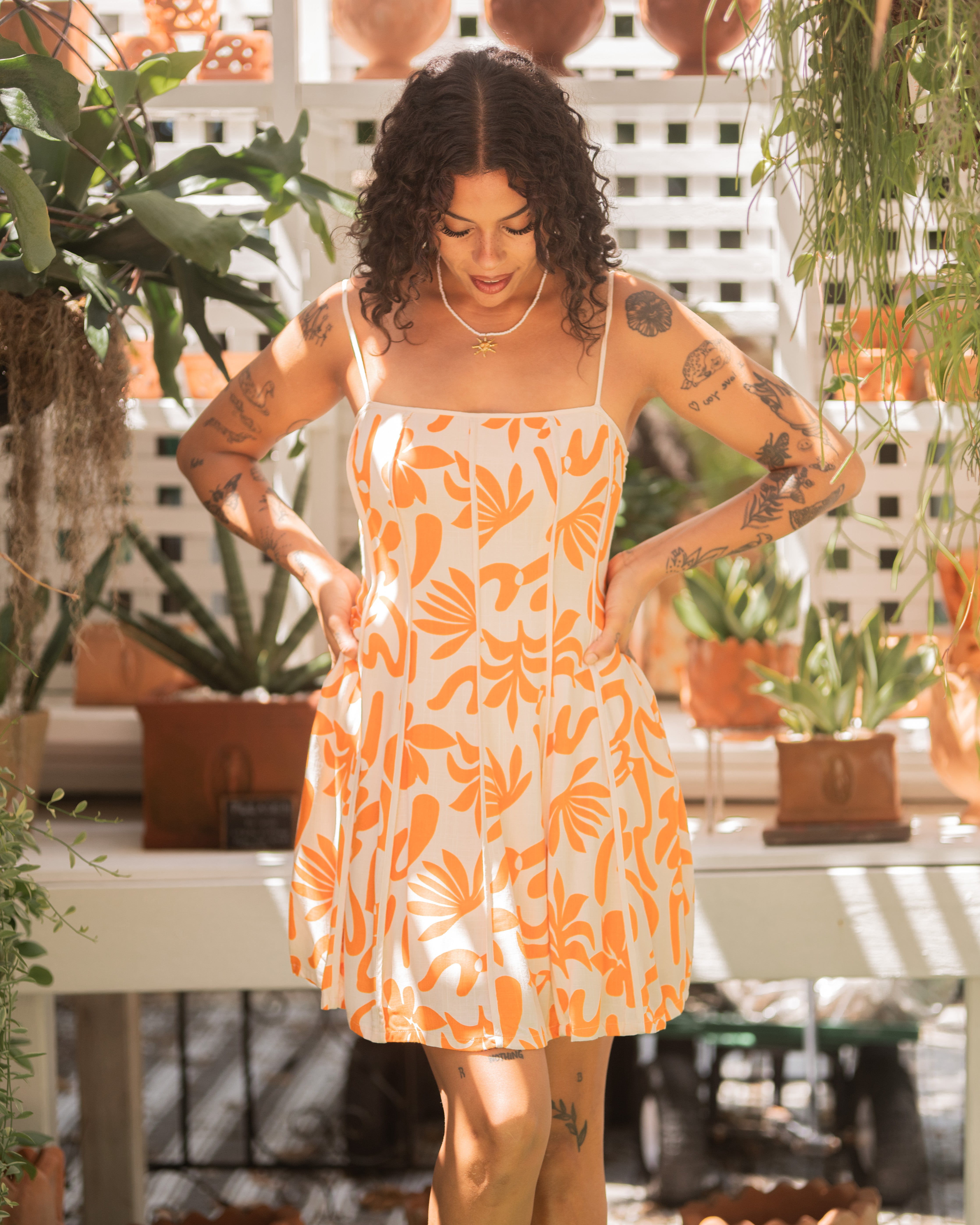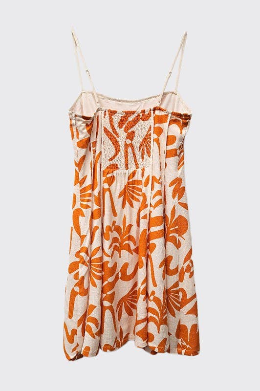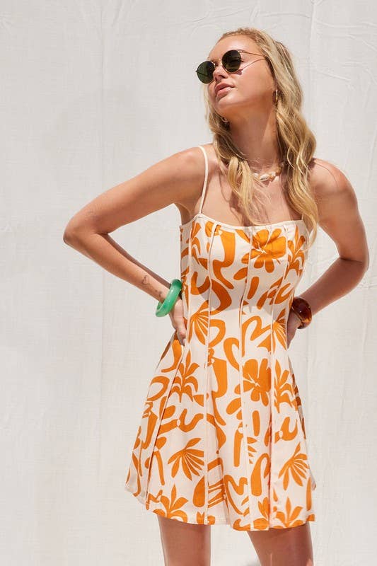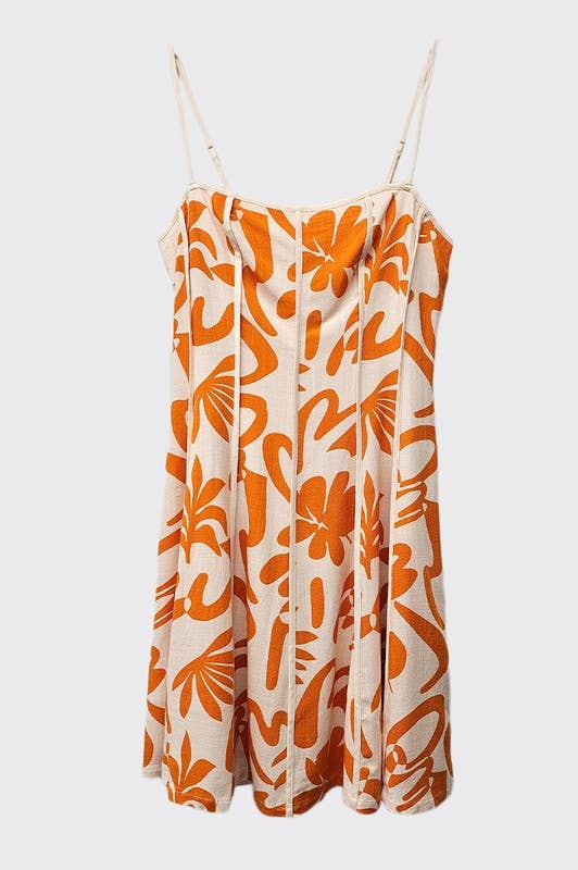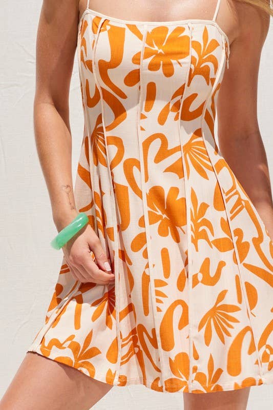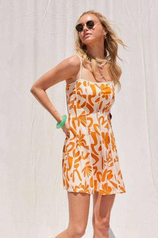 Abstract Print Mini Dress With Contrast Binding - Orange & White