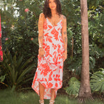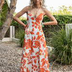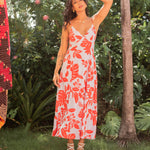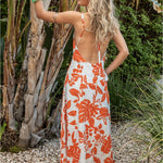 Tropical Maxi Dress w/ Tie Back - Red / Light Blue