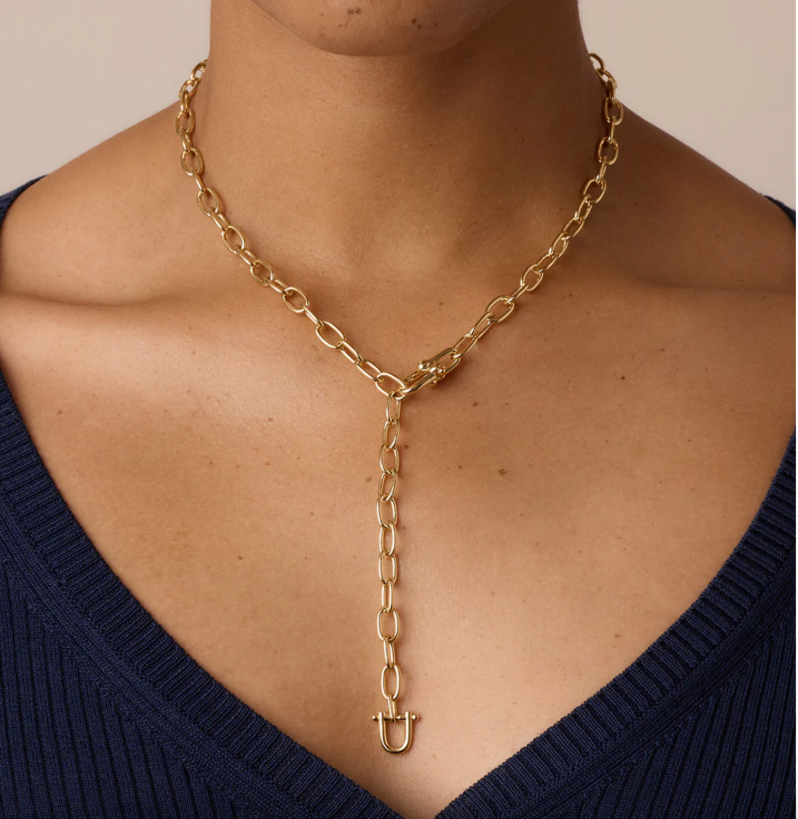 - Can be worn as a 20" necklace or lariat with a customizable drop