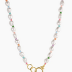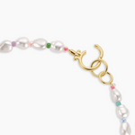 Equal parts playful and polished, this pearl necklace features dainty pops of color for those who like to have a little fun with their necklace layer. At 17", this necklace falls just below the collarbone, and is perfect for layering with your favorite gold and 18k gold plated chains and charm necklaces.