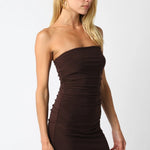 Strapless Ruched Mini Dress - Chocolate Brown – Miss Monroe Boutique