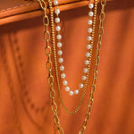 Cadeaux 18K Gold Non-Tarnish Stacked Pearl Chain Necklace: Yellow Gold – Miss Monroe Boutique