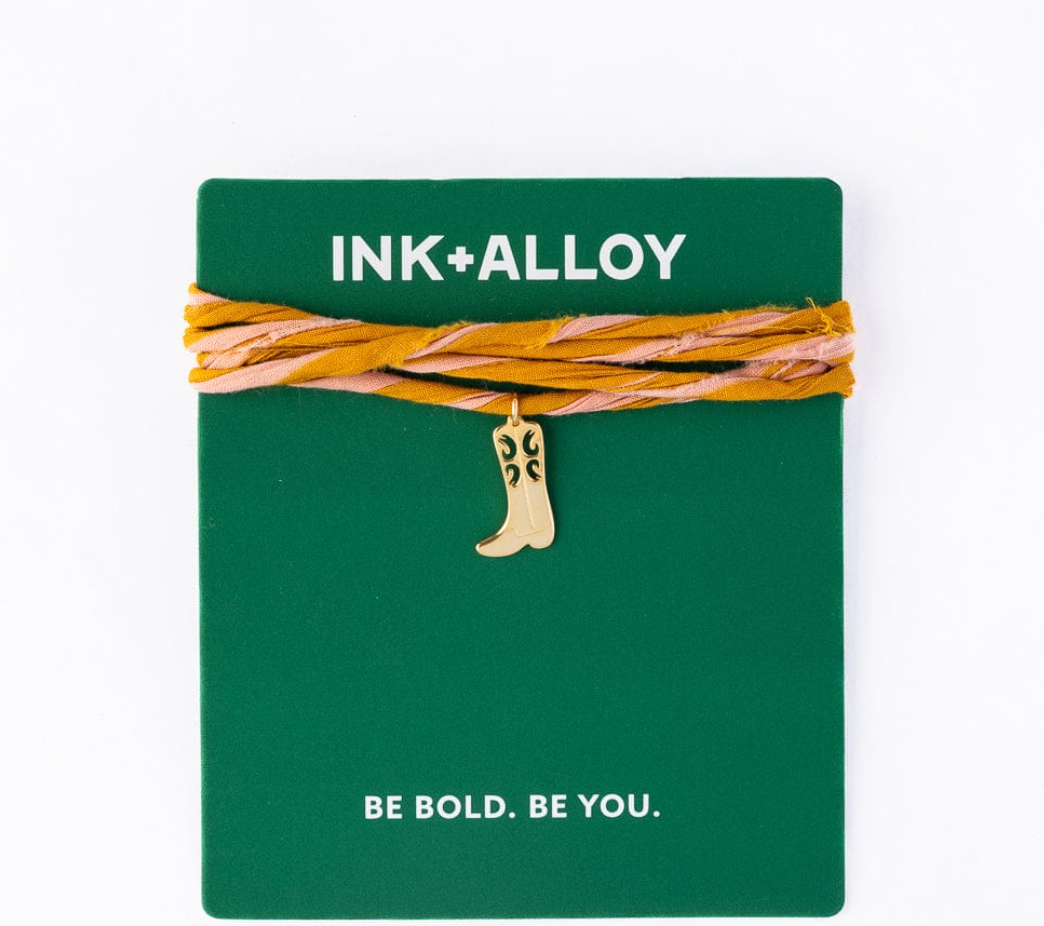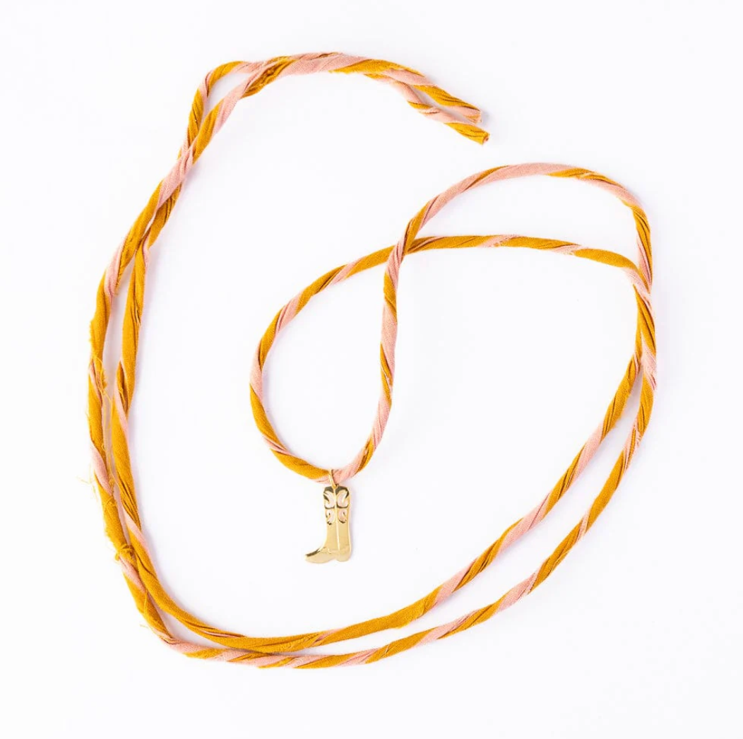 Fiona - Twisted Fabric Wrap Bracelet With Charm - Blush Pink & Yellow With Boot Charm