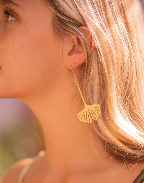 Amelia - Brass Asymmetrical Ginko Leaf Dangle Earrings – Miss Monroe Boutique