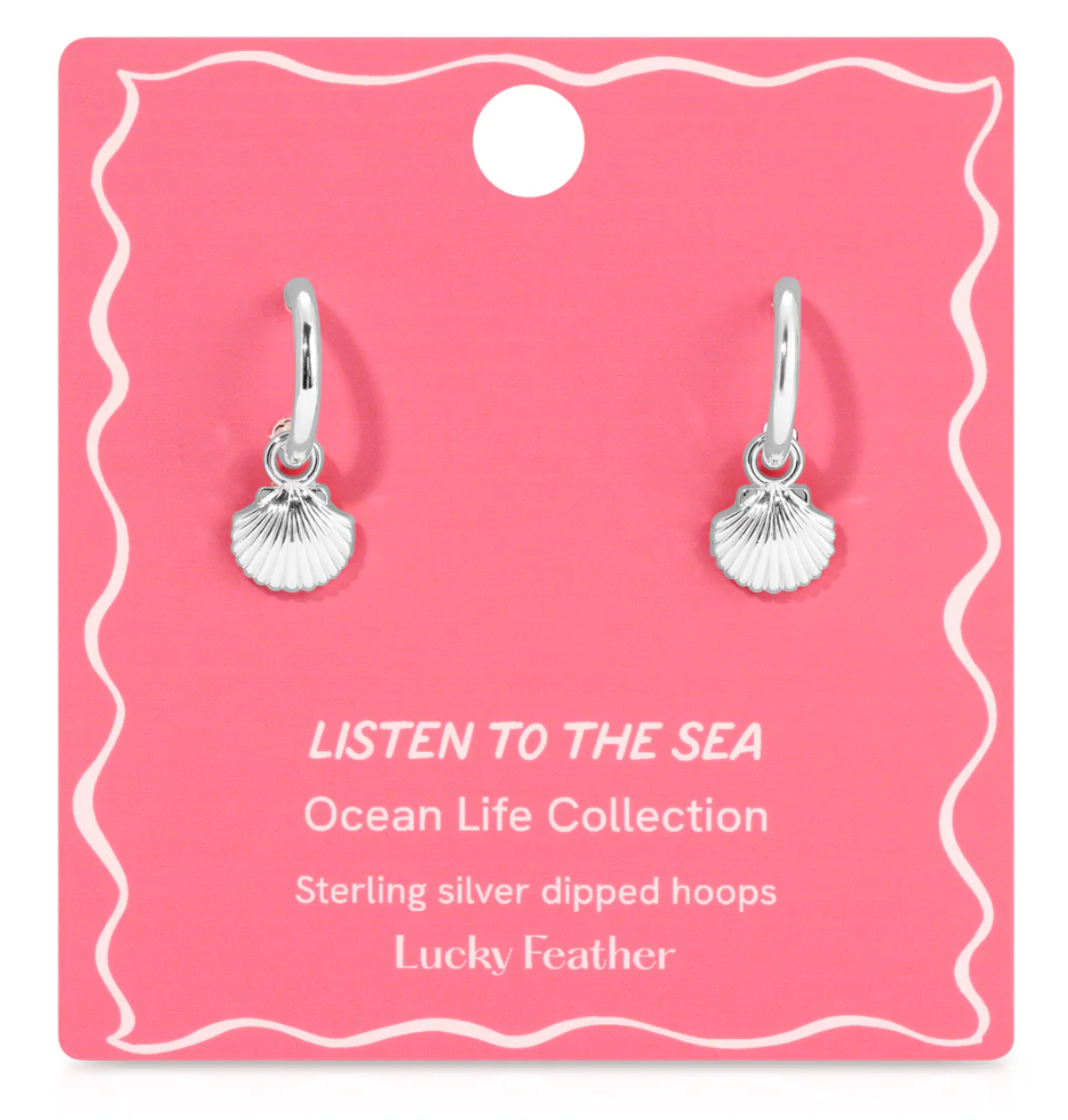 Listen to the sea—these silver-dipped shell hoops bring a soft shimmer and beachy elegance to any outfit. A delicate nod to coastal treasures, they make the perfect gift or warm-weather accessory.