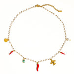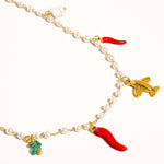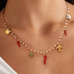 Praiano 18K Gold Non-Tarnish Pepper Charm Pearl Necklace: Red